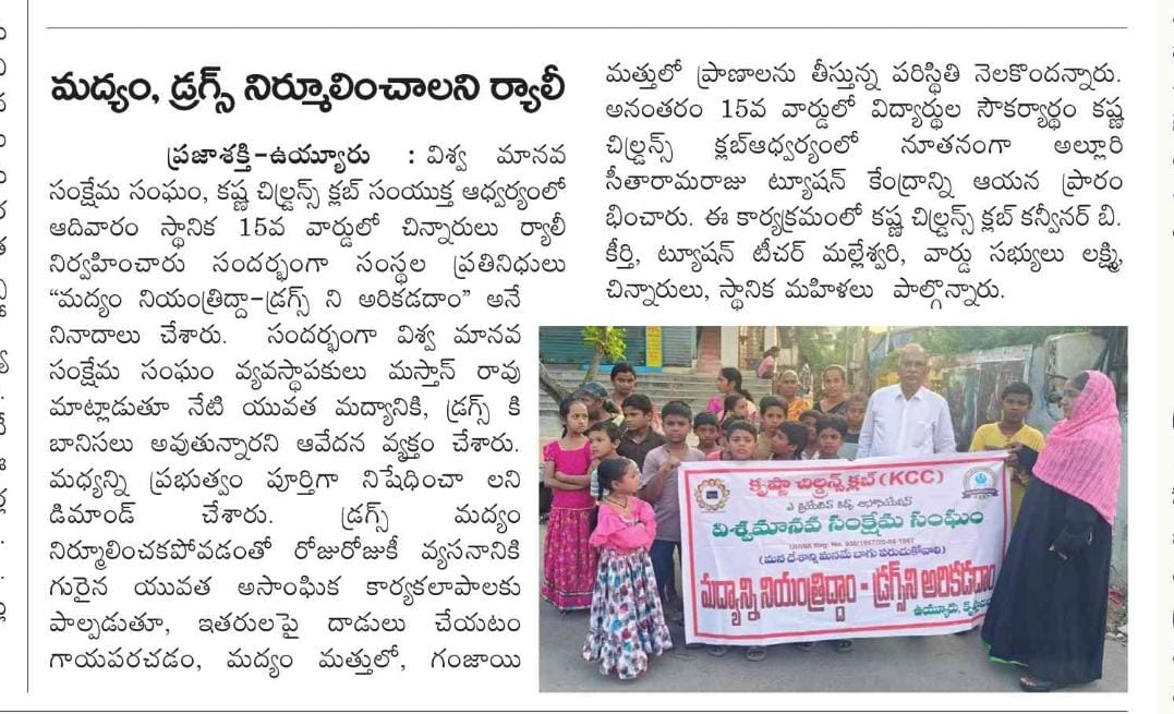 Paper cuttings: Opening of 54th tuition centre in Gattu Village and Mandal, Gadwal district , Telangana by Viswa Manava Samkshema Sangam and Telangana Balotsavam on 7-9-25.