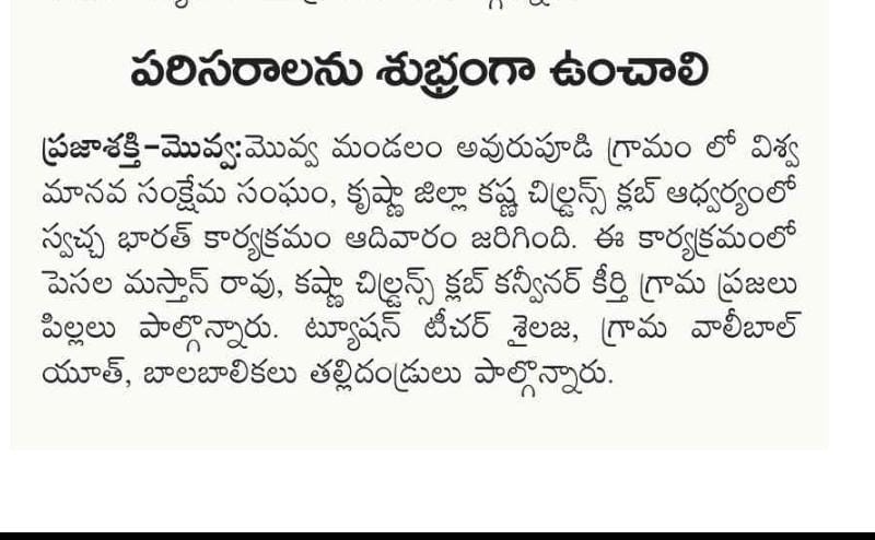 అవిరిపూడి, మొవ్వ మండలం, కృష్ణా జిల్లా లో విశ్వ మానవ సంక్షేమ సంఘం మరియు కృష్ణా జిల్లా children's club ఆధ్వర్యంలో 67వ tuition centre ప్రారంభించ బడింది.